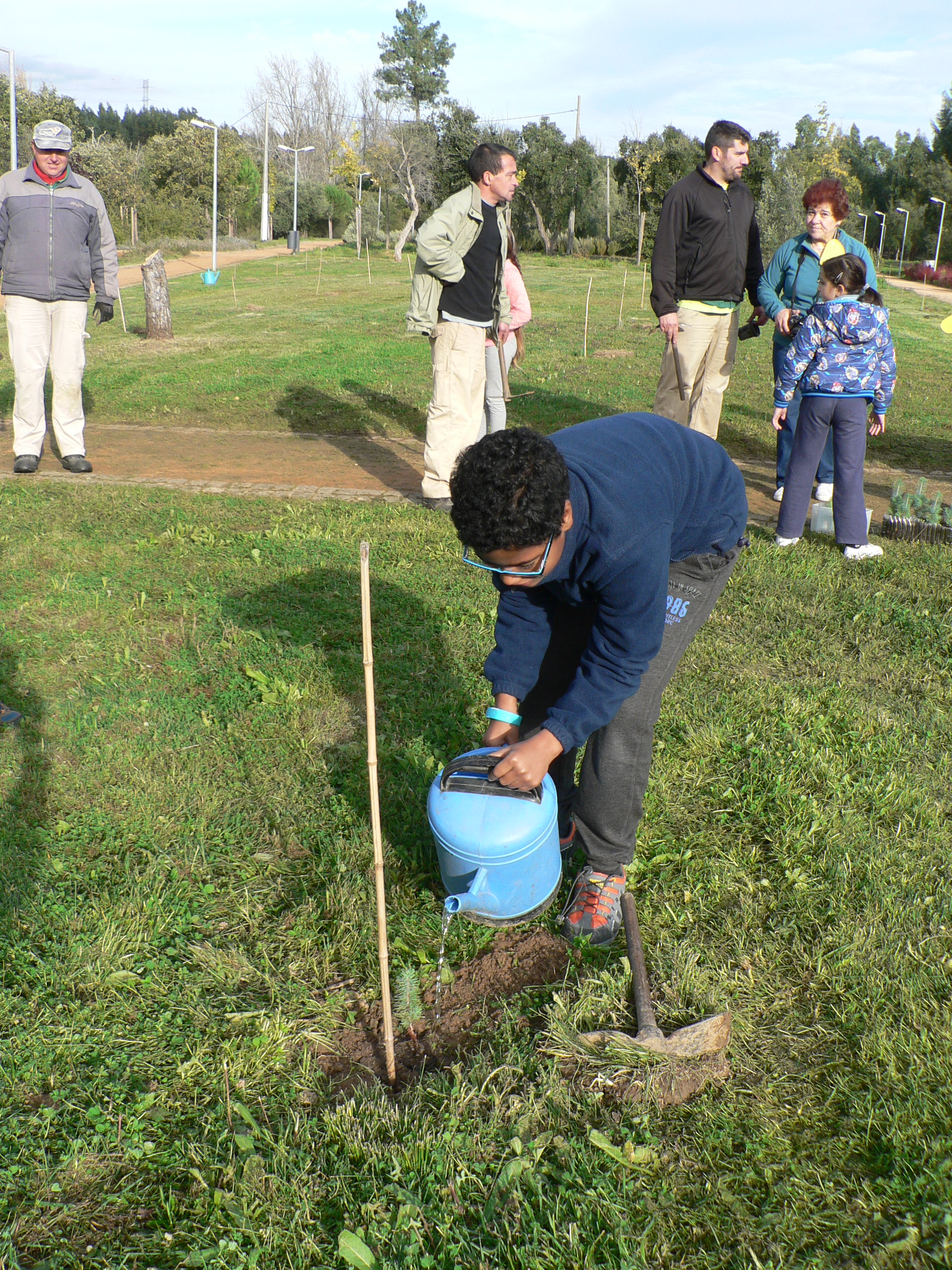 Um aluno de cada turma foi, em representação da turma, ao jardim do Bonito plantar pinheiros que tinha andado a cuidar durante um ano, no colégio.
