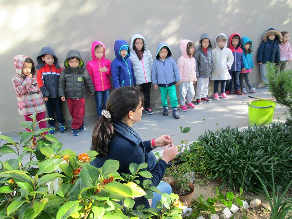 Os alunos do infantário plantaram camélias no jardim do colégio.
