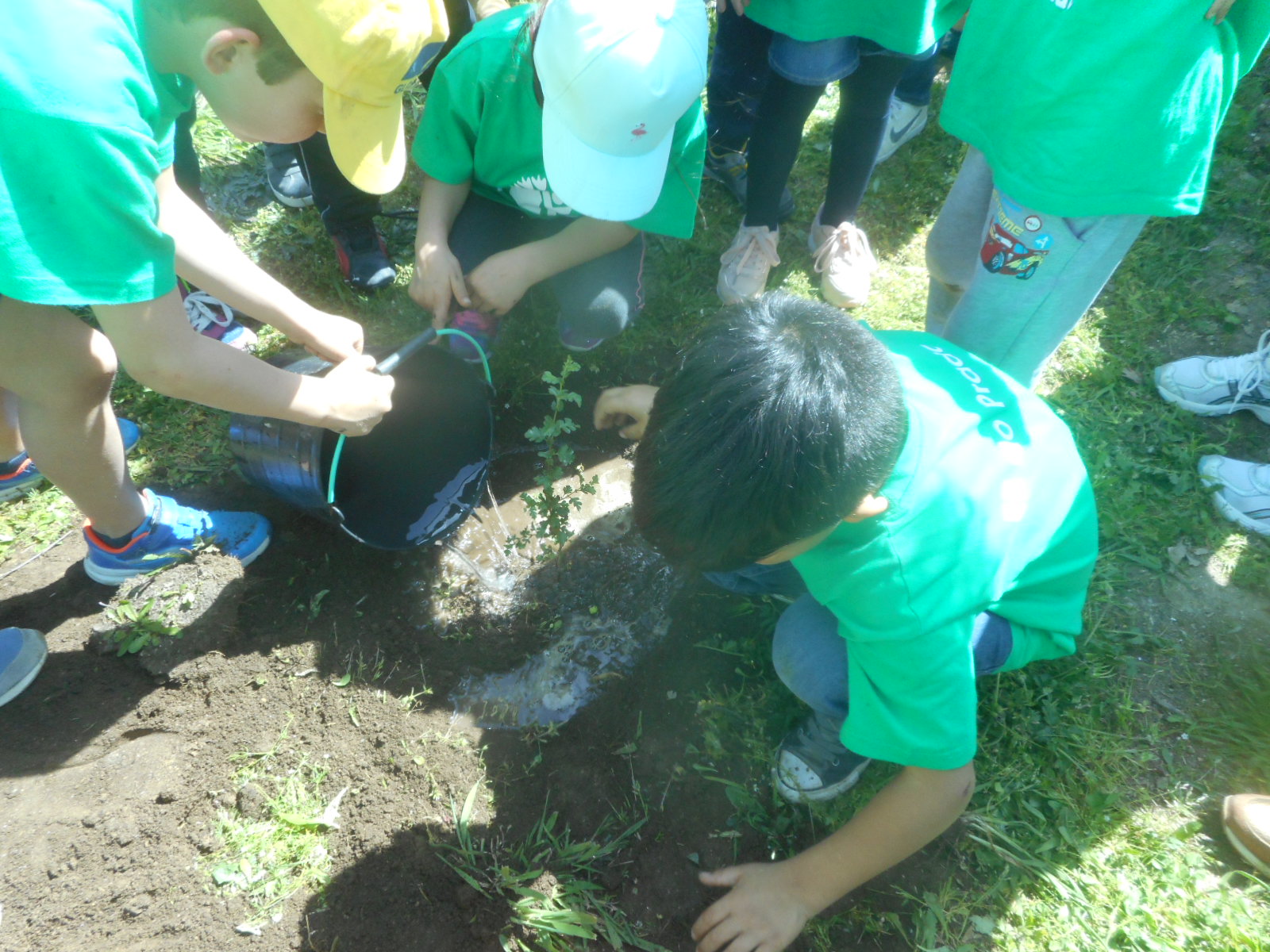 A Quercus, parceiro Eco-Escolas disponibilizou dois pilriteiros que plantamos em vasos com composto produzido na nossa escola depois de uma abordagem por parte de uma engenheira ambiental desta associação sobre as suas caracteristicas e hábitos mo dia 12 de abril. Mais tarde, dia 20 de abril e como forma de antecipar as comemorações do Dia da Terra, transplantamos estas árvores para um terreno de familiares de duas crianças da escola que não fica longe de forma a podermostratar e acompanhar o seu crescimento monitorizando todo o processo. Toda a Escola, 125 alunos, professoras e funcionárias vestiram as t´shirts Eco-Escolas e fizeram o percurso a pé para plantarem as árvores. A Junta de Freguesia e o Encarregado de Educação destas crianças esteve presente na atividade assim como a Engenheira Márcia da Quercus.