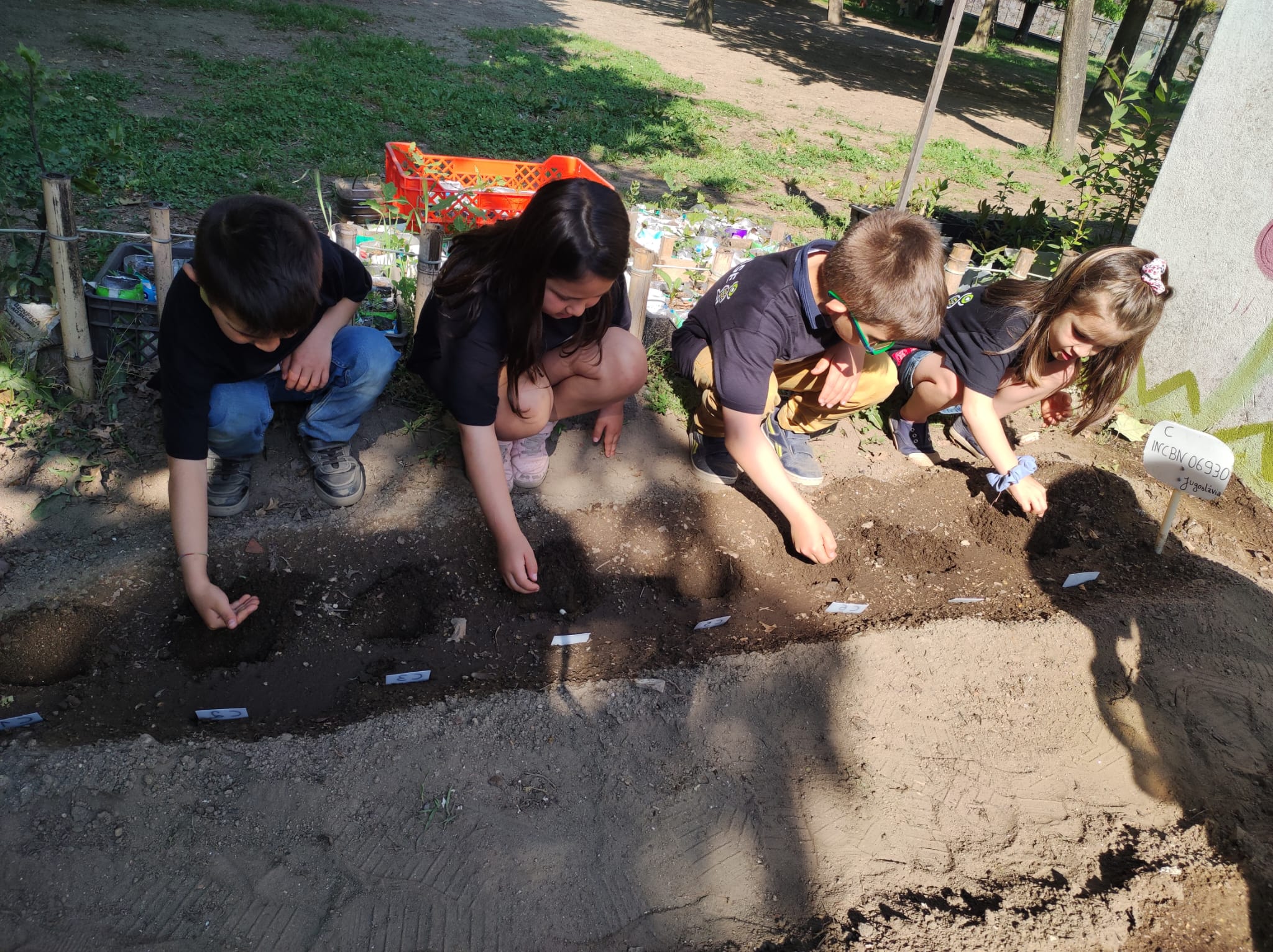 Os alunos foram divididos em grupos e cada grupo cuida dos feijões de um pais: retiram ervas, regam, registam a data da sementeira, data da germinação, cor e forma da folha, cor da flor, cor do fruto, data da colheita. A sementeira dos feijões realizou-se no dia 20 de maio.
