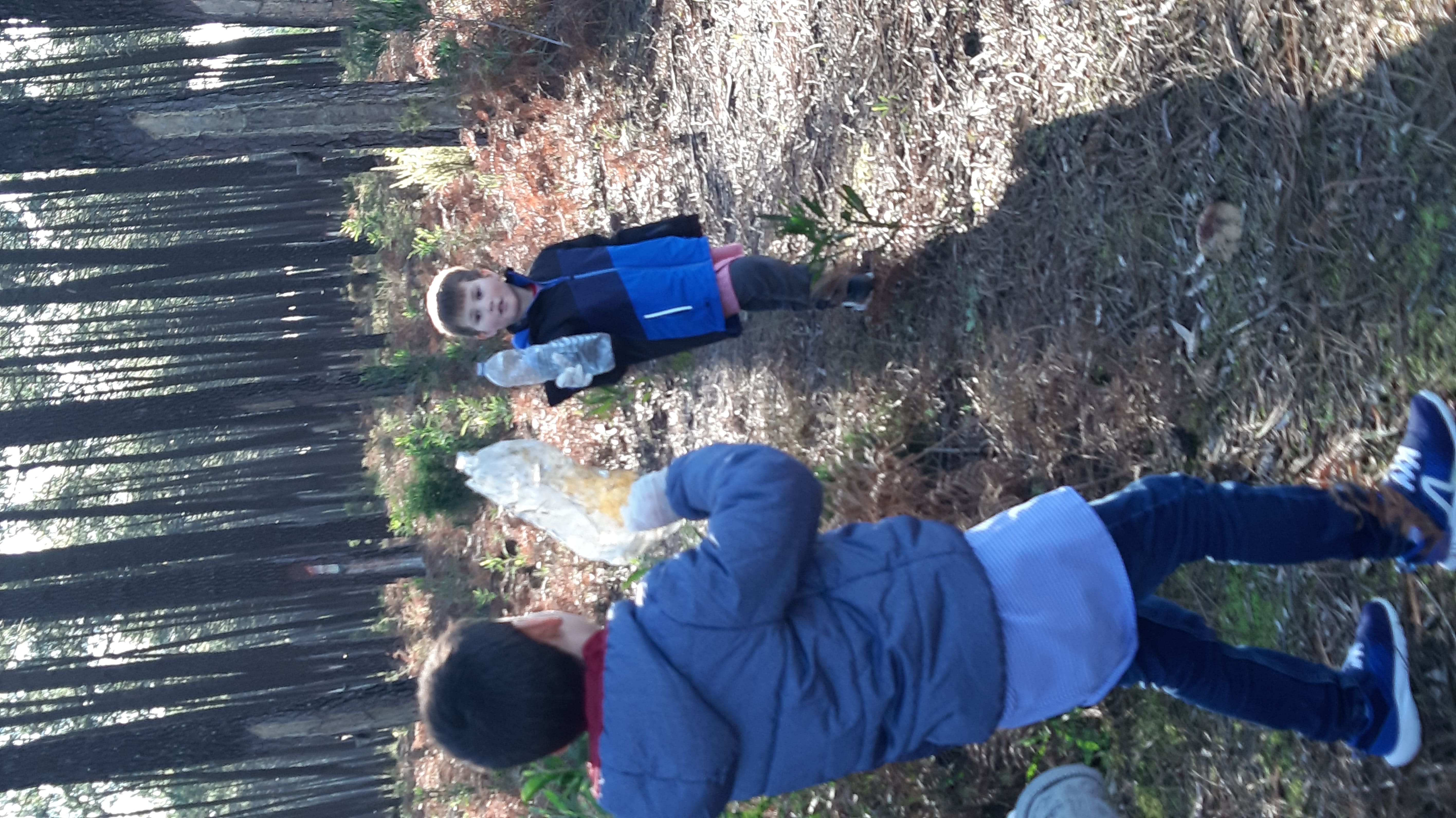 As crianças do Pré escolar foram apanhar lixo na floresta circundante à escola.