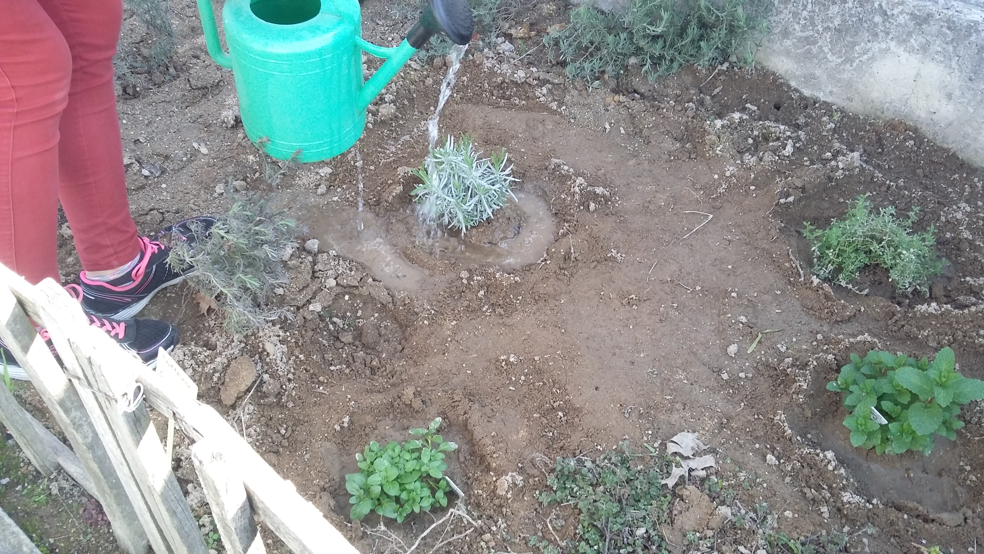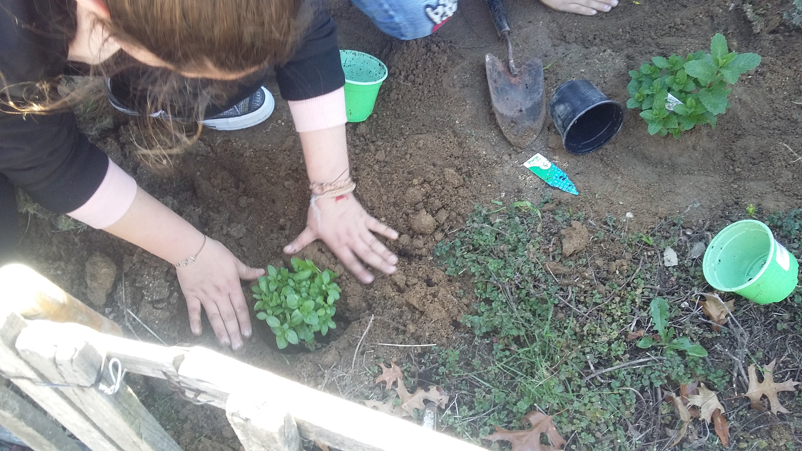 Foram seleccionadas as variedades pretendidas e com a colaboração de alunas foi feita a plantação no canteiro aromático.