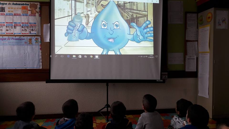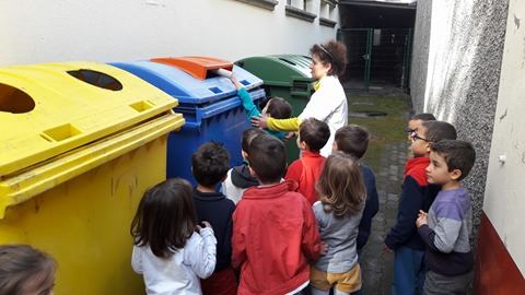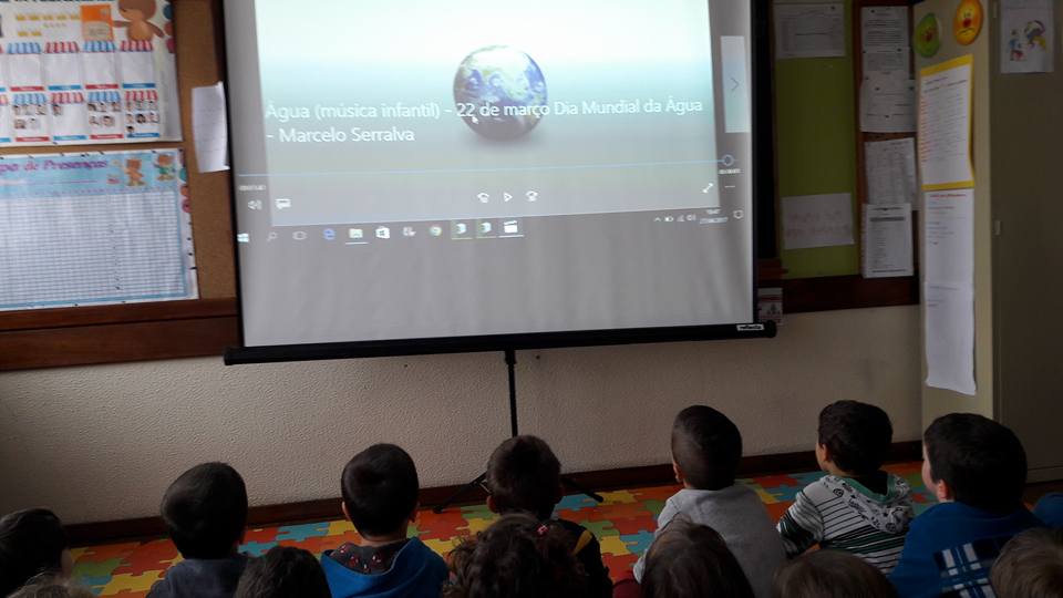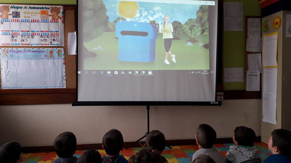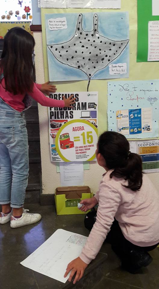 As crianças do pré escolar visualizaram filmes com os temas água e resíduos. Depois fizeram jogos dos resíduos e foram ao Eco-Ponto, colocar os resíduos no local certo. As crianças do 1º Ciclo elaboraram cartazes a apelar a comunidade escolar para a recolha de resíduos (pilhas). Os cartazes ficaram colocados no painel Eco-Escolas e na entrada da escola.
