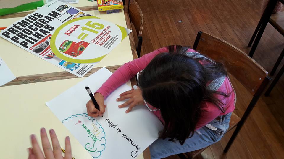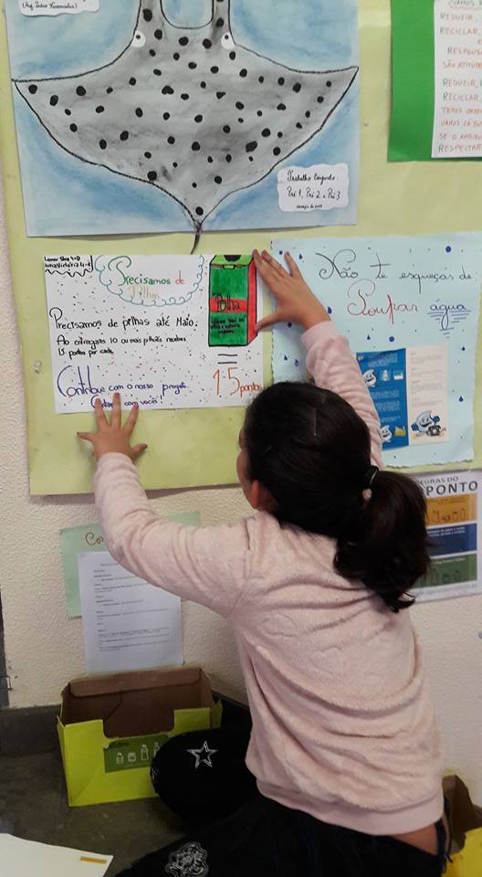 Fazemos a avaliação com o número de pilhões recolhidos até ao fim de maio. Para avaliar as crianças fizemos desenhos livres e atividades nos manuais.