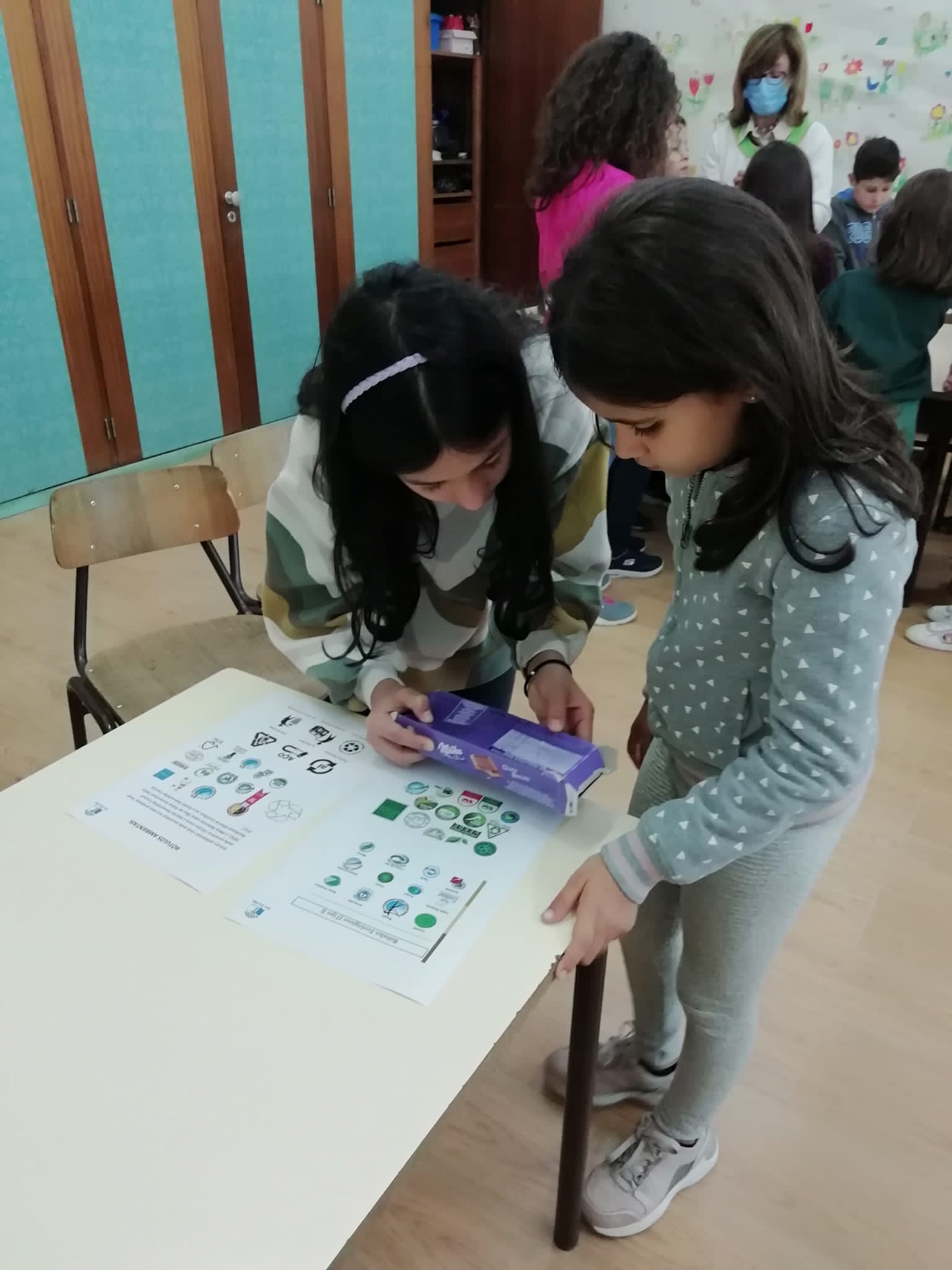 Os alunos foram desafiados a procurar os rótulos nas embalagens e a consultar uma listagem de rótulos em caso de dúvidas.