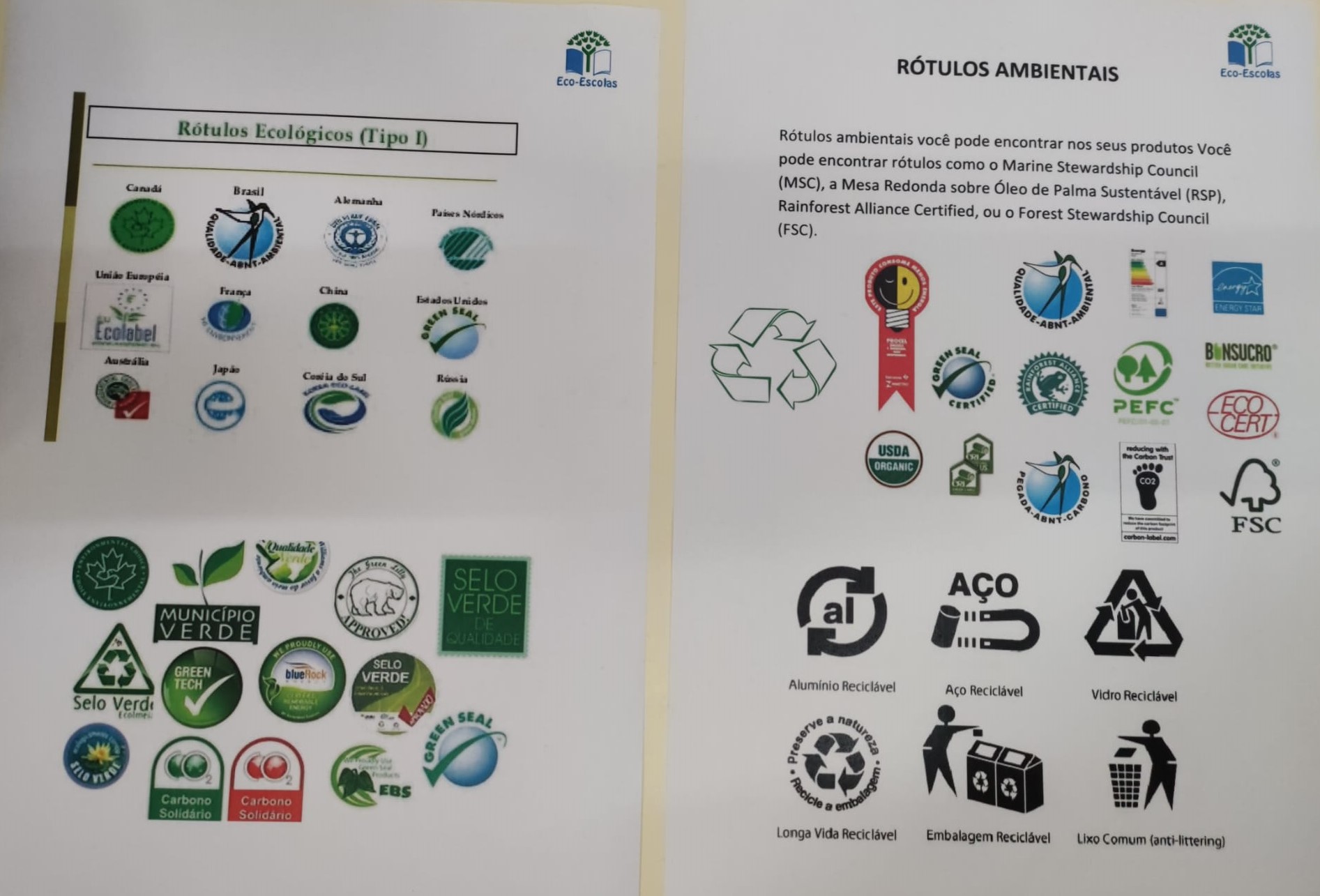 A lista de rótulos ambientais foi afixada na sala para relembrar e ajudar os alunos a fazer escolhas sustentáveis.