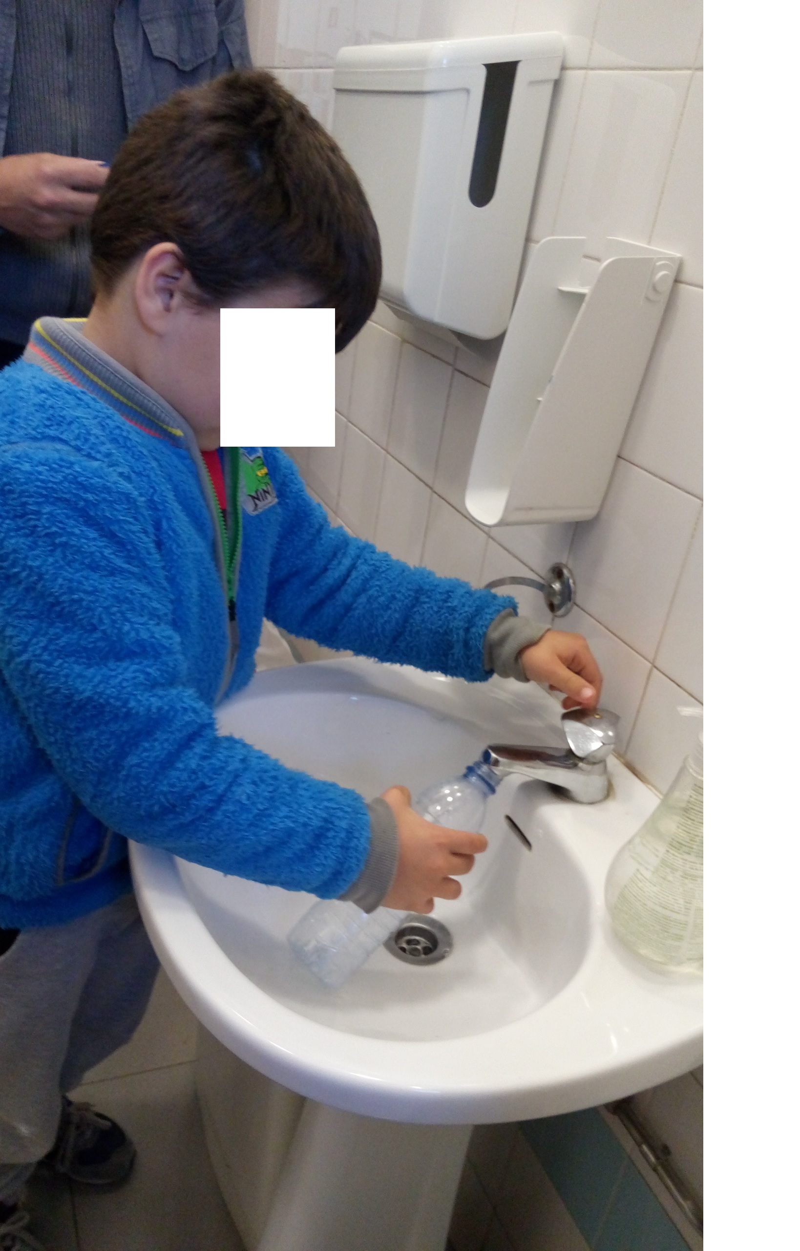 A equipa de Eco-Escolas da EB1 de Alcains colocou garrafas de água de 0,5 l nos autoclismos das casas de banho para reduzir o consumo de água da escola.