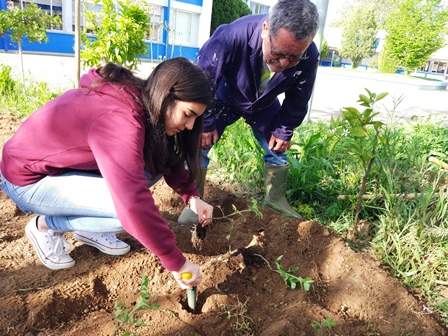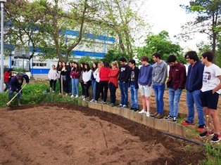 O final da comemoração da semana da Terra foi marcada com uma visita à horta pedagógica – HORTA das CAPUCHINHAS. Após uma introdução sobre a importância da agricultura biológica e ensinamentos de tratos culturais, os alunos  procederam à monda de ervas daninhas, feitura de canteiros e plantio de tomateiros e colheita de favas.