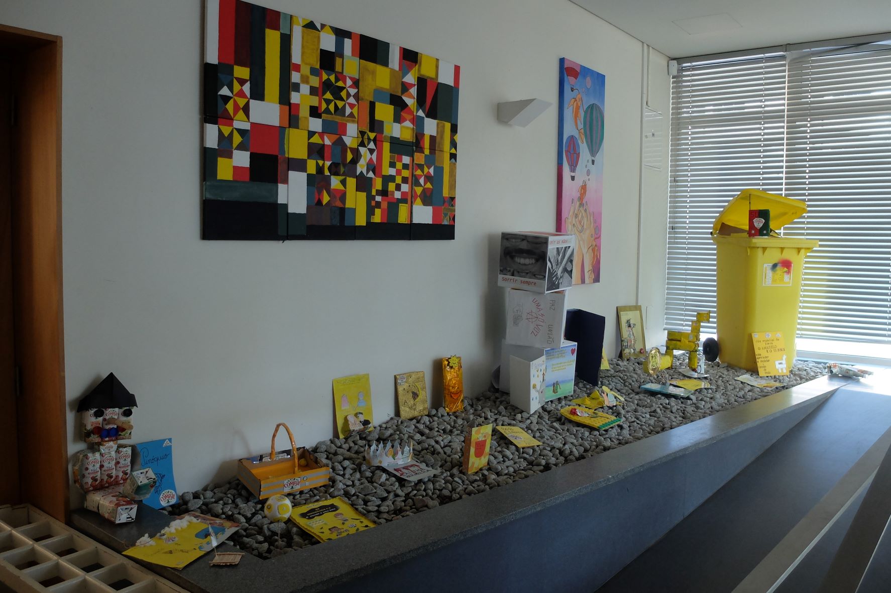 - Exposição “No Dia Mundial do Livro, o amarelo é a cor das histórias” – no espaço da Biblioteca, mostra de trabalhos dos alunos do 1.º, 2.º e3.º CEB feitos essencialmente com embalagens e predomínio da cor amarela, fazendo alusão ao ecoponto amarelo onde estas devem ser depositadas. Estes trabalhos consistem em criações da capa de livros e de personagens ou símbolos das suas histórias. Alguns destes trabalhos foram enviados para representar a escola no desafio promovido pela ABAE: https://historiasamarelas.abae.pt/