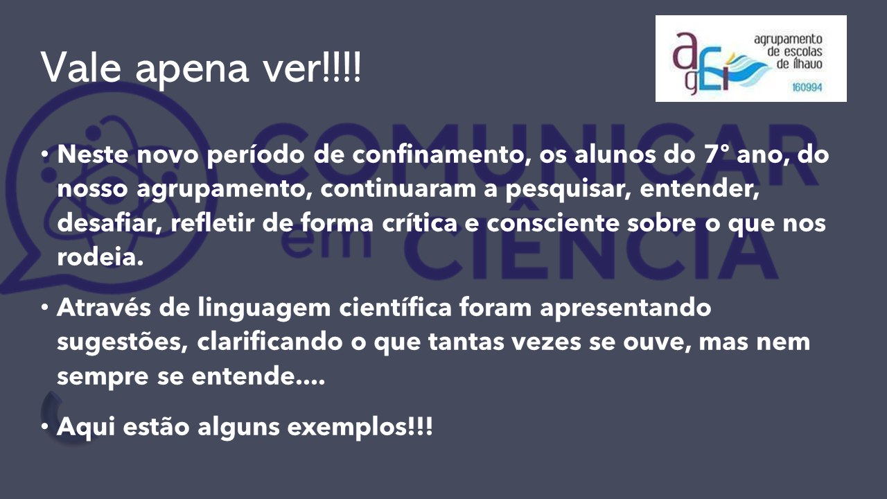 Neste novo período de confinamento, os alunos do 7º ano, do nosso agrupamento, continuaram a pesquisar, entender, desafiar, refletir de forma crítica e consciente sobre o que nos rodeia. vamos criar um slogan!