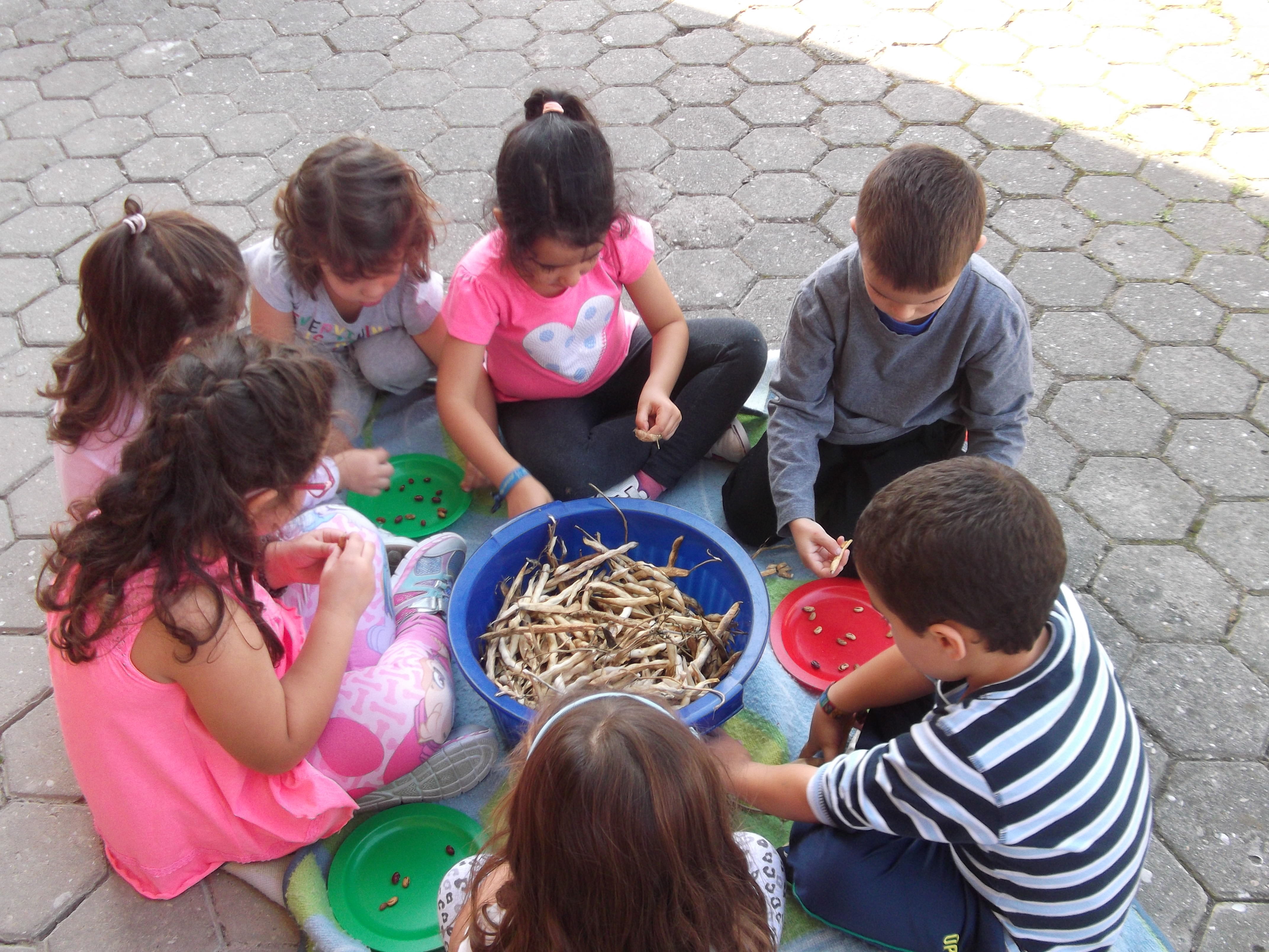 As crianças foram à horta apanhar os feijões que haviam sido semeados anteriormente. De seguida debulharam os feijões para serem utilizados na confeção de uma sopa saudável.
