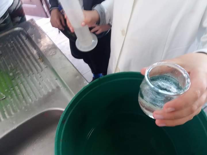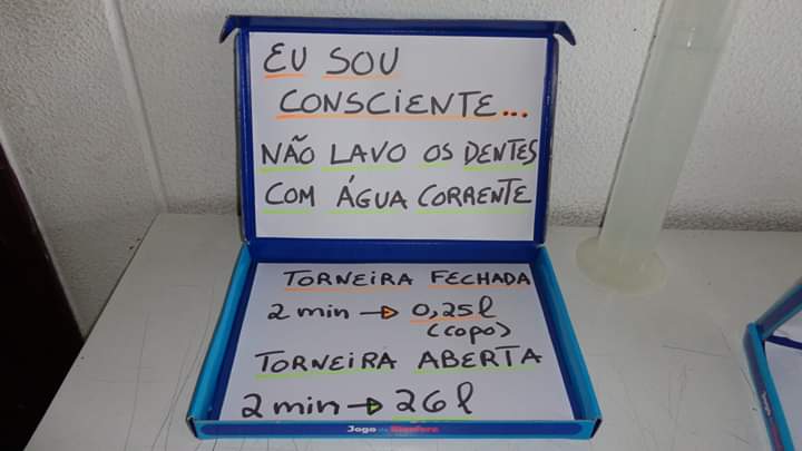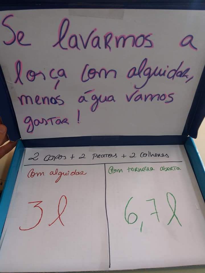 Atividades experimentais para perceber a quantidade de água desperdiçada em 3 atividades do dia a dia: lavar dentes, lavar loiça e usar torneira avariada.