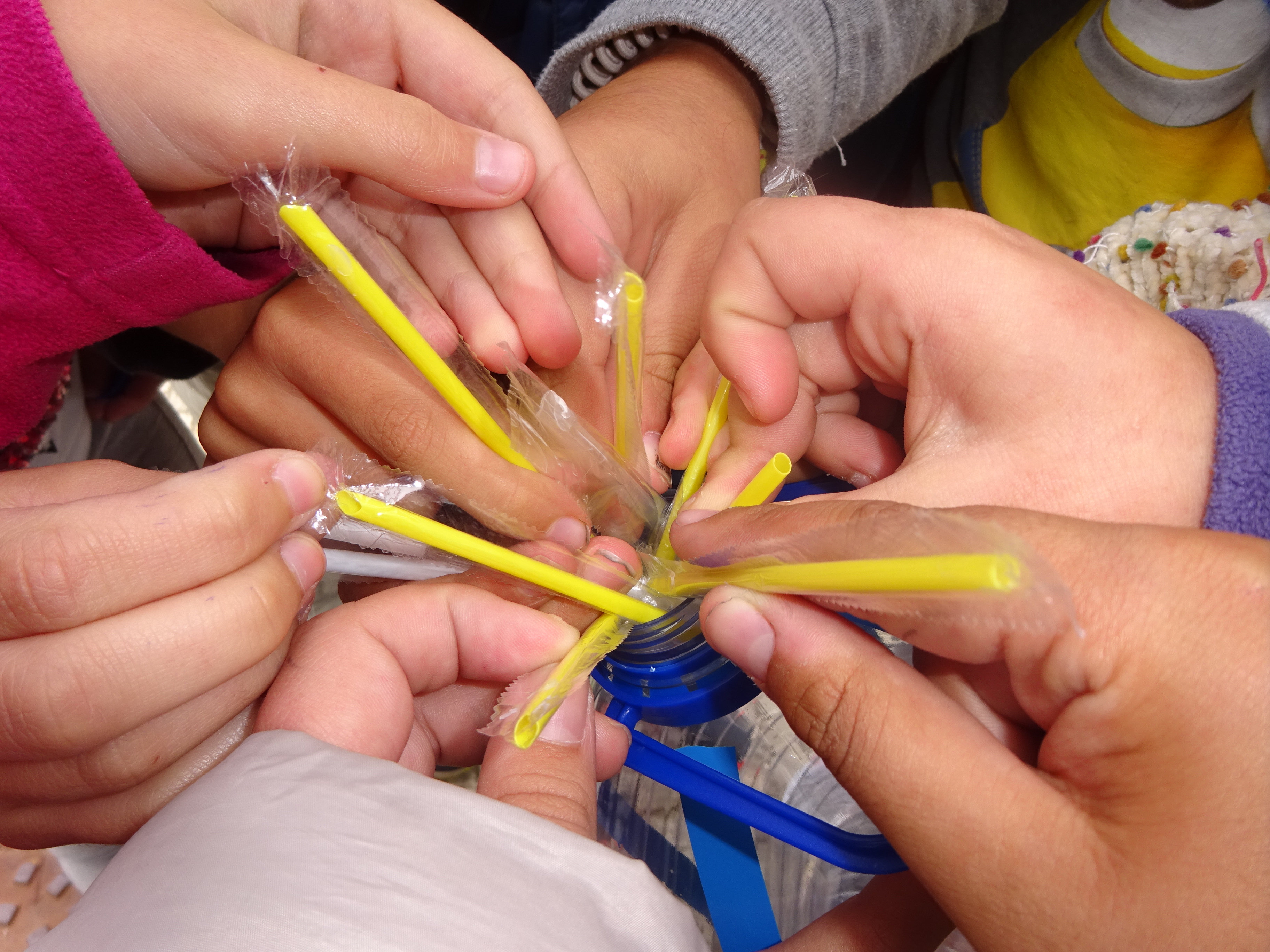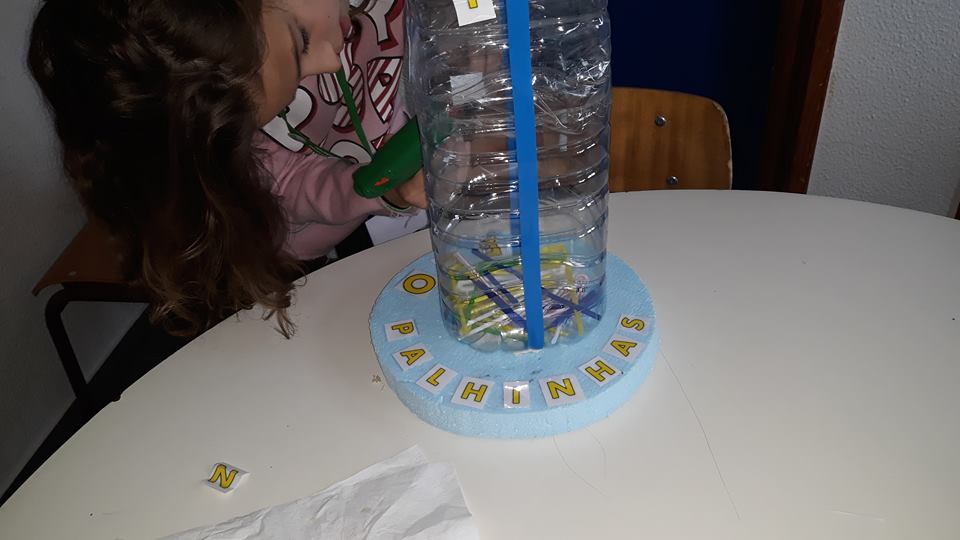 Após a visualização de jogos, pequenos vídeos e powerpoints sobre o plástico nos oceanos, surgiu a ideia de construir um ecopalhinhas para divulgar, na escola, a separação das palhinhas e lançar o ‘Recusar’ as palhinhas. Assim, contribui-se para a sua ‘Redução’ uma vez que estas são feitas de um tipo de plástico não reciclável, LPDE, e, por esse motivo, não devem de ir para o eco ponto amarelo.