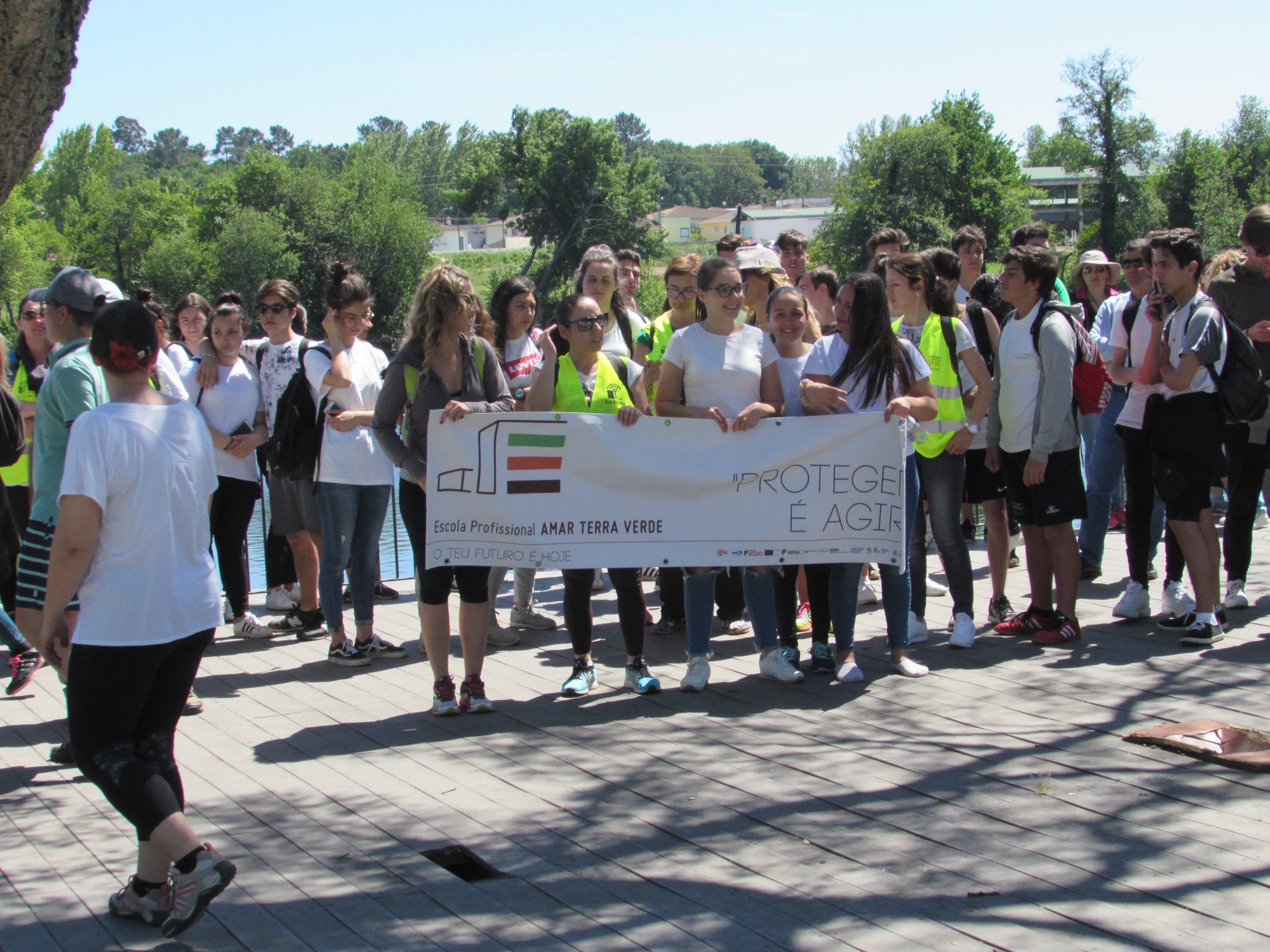 Saindo da Escola Profissional, pela fresquinha matinal, os 500 alunos e professores palmilharam caminhos, apreciando recantos e cheiros da natureza, empunhando mensagens de preservação ambiental, sob o lema “Proteger é agir”, inscrito numa tarja que abria a caminhada.