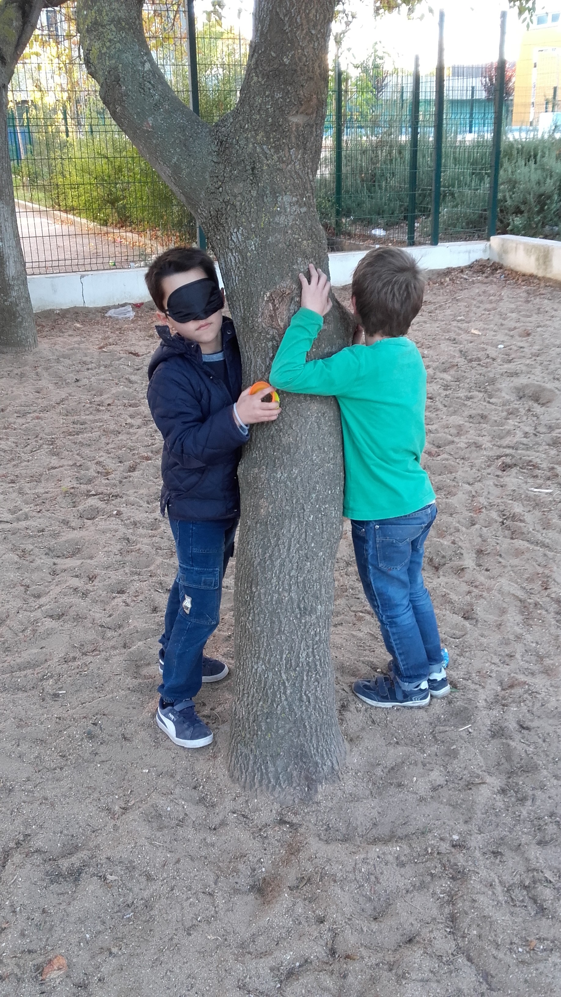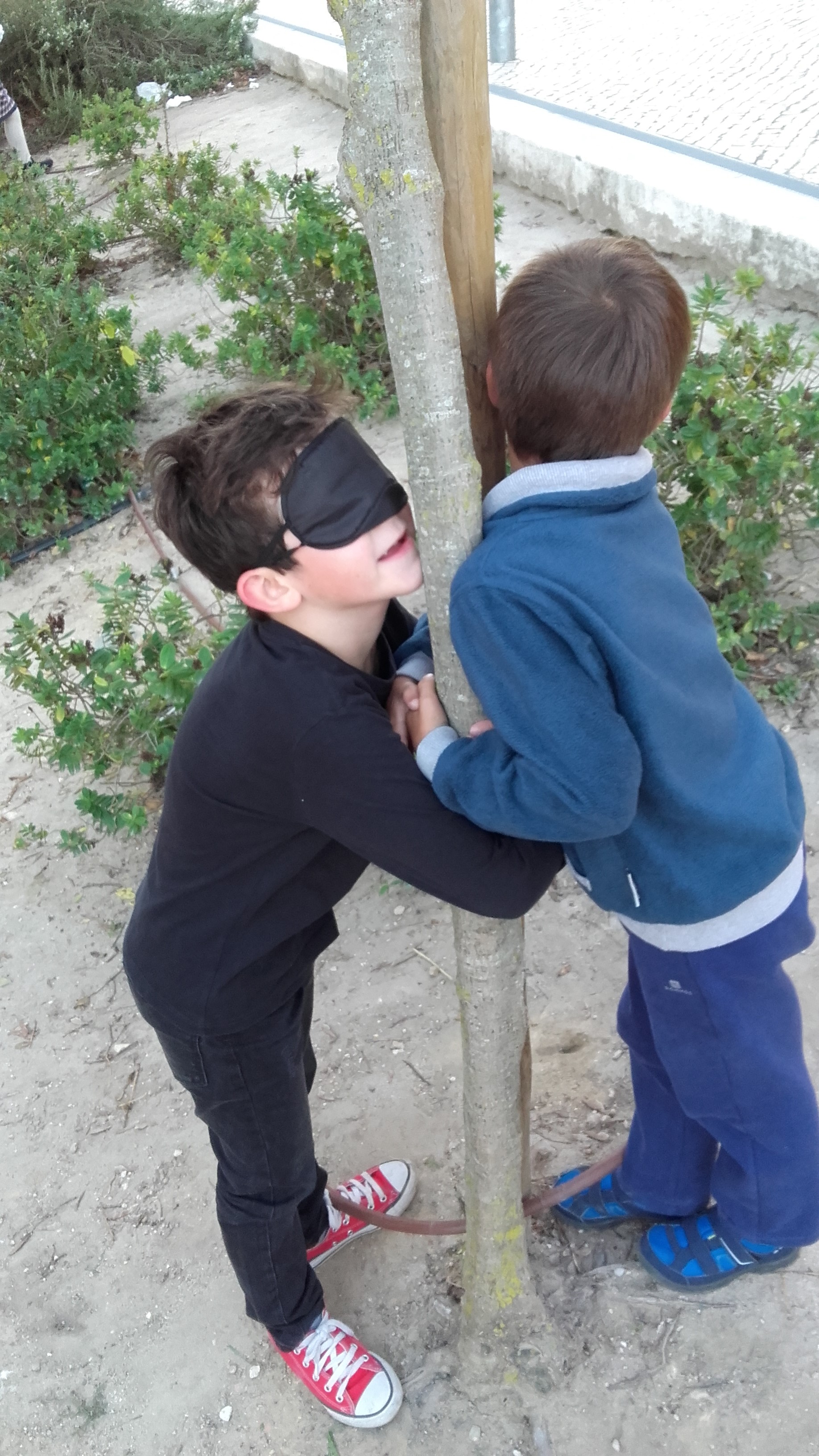Através de uma forma lúdica e sensorial, os alunos, foram levados a formar pares em que um dos elementos está vendado e é guiado pelo outro. Desta forma são encaminhados para conhecer, abraçar, cheirar e sentir uma árvore. Em seguida foi-lhes retirada a venda e foi-lhes dada a oportunidade de observar a árvore em silêncio.