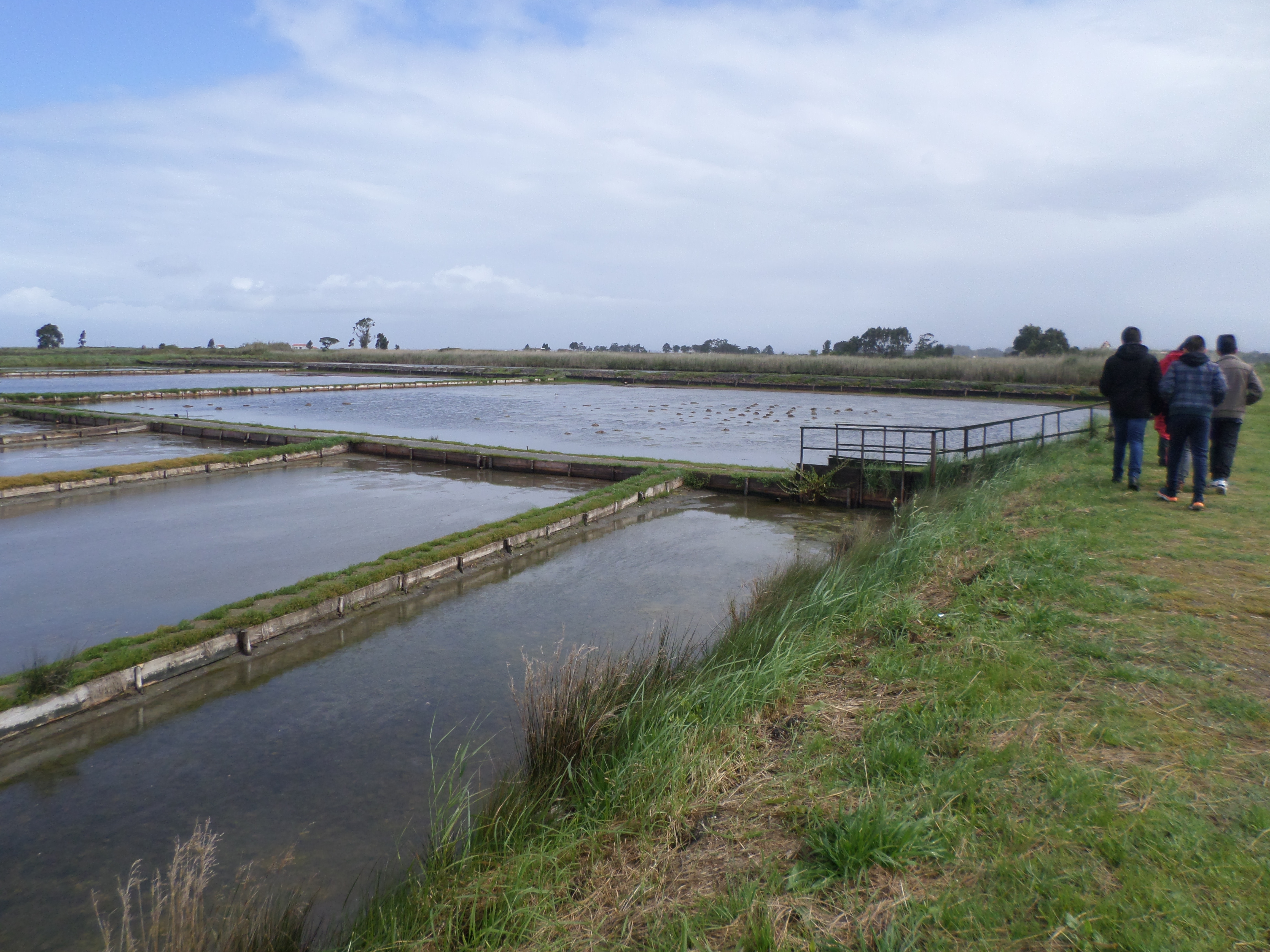 A guia acompanhou os alunos pelas marinhas e explicou como o Marmoto controlava as águas do mar para fomentar a evaporação da água e a cristalização do sal.