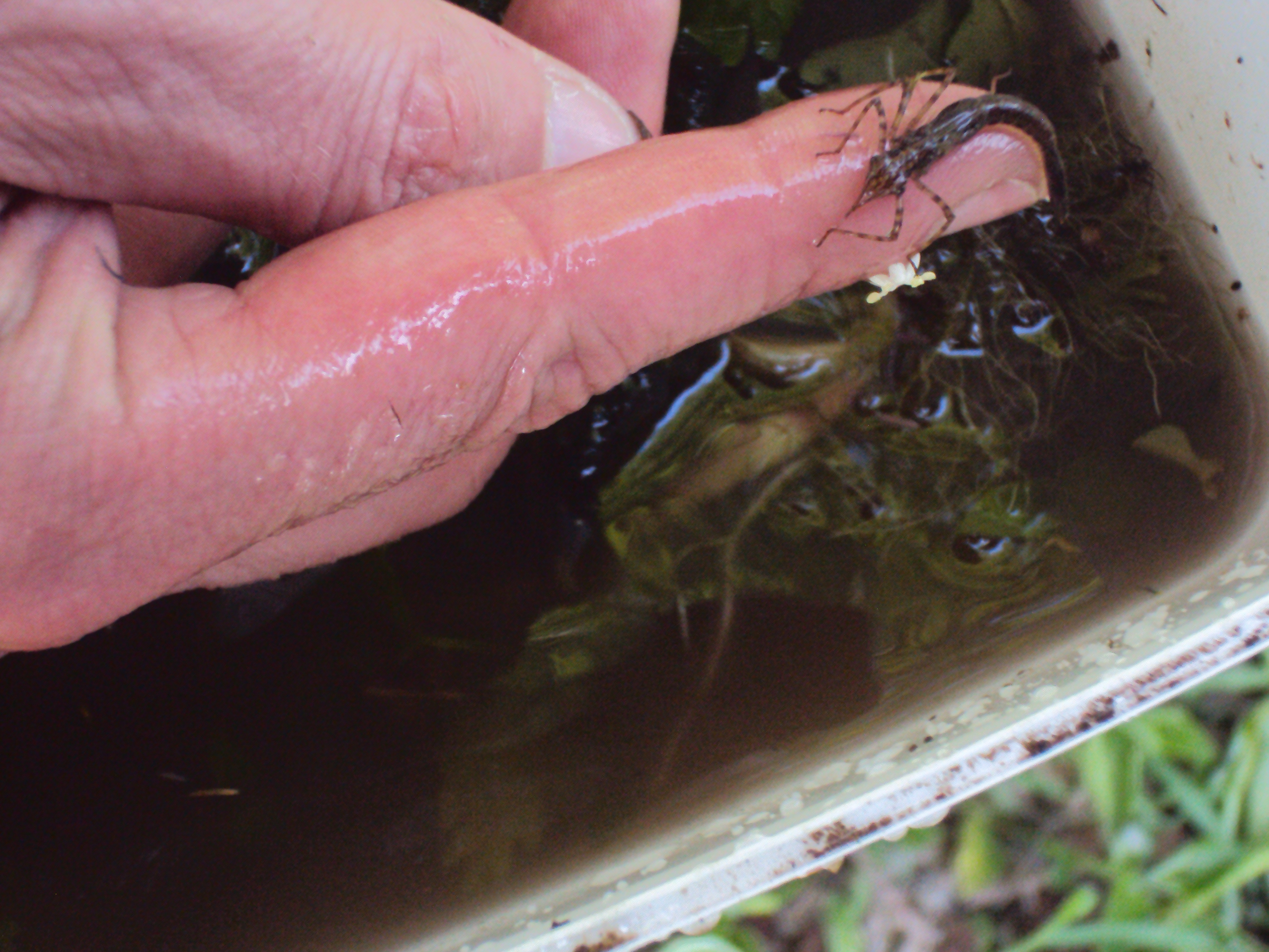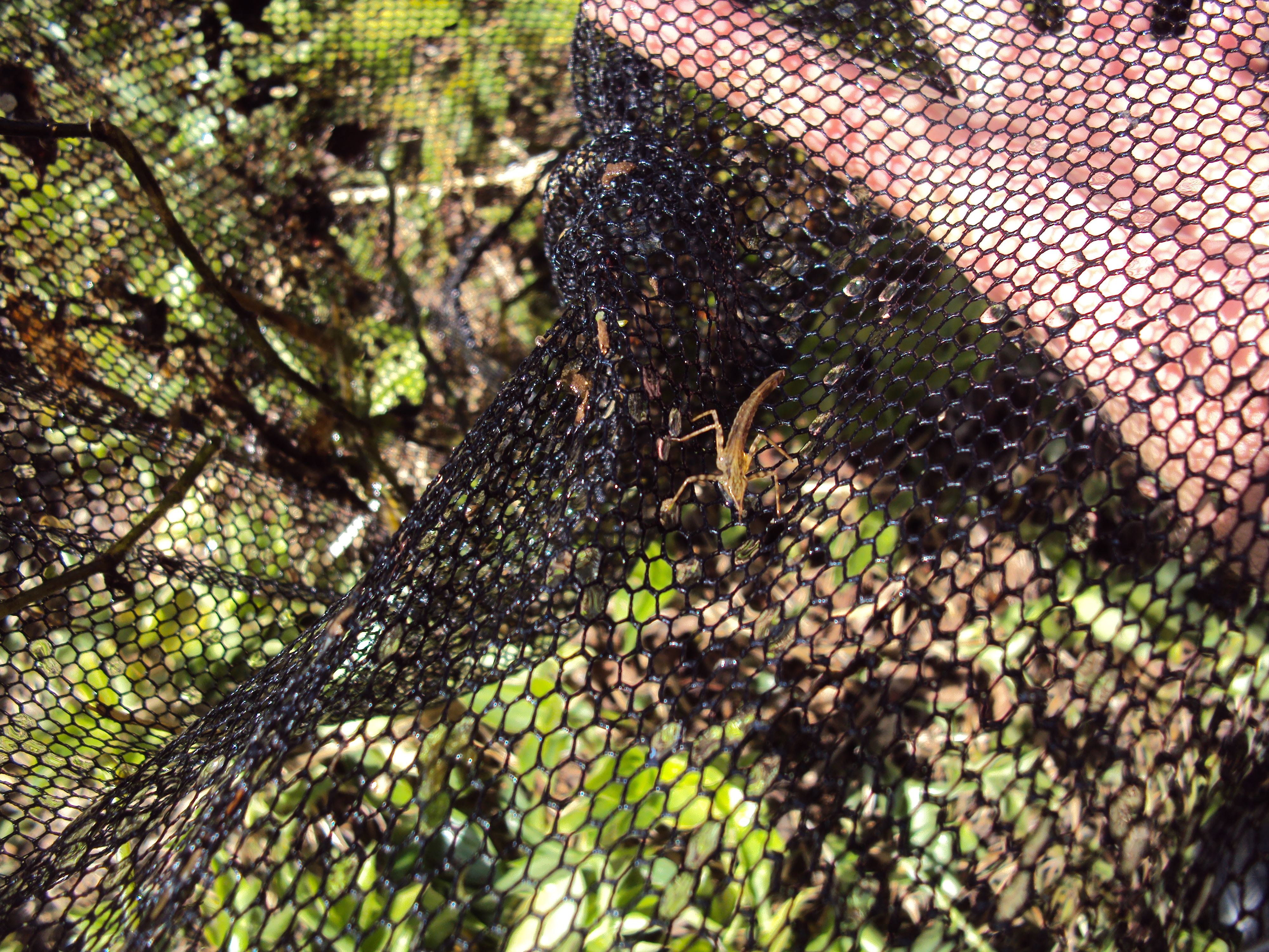 Um grupo de alunos foi recolher macroinvertebrados com o auxílio de uma rede enquanto a restante parte da turma se