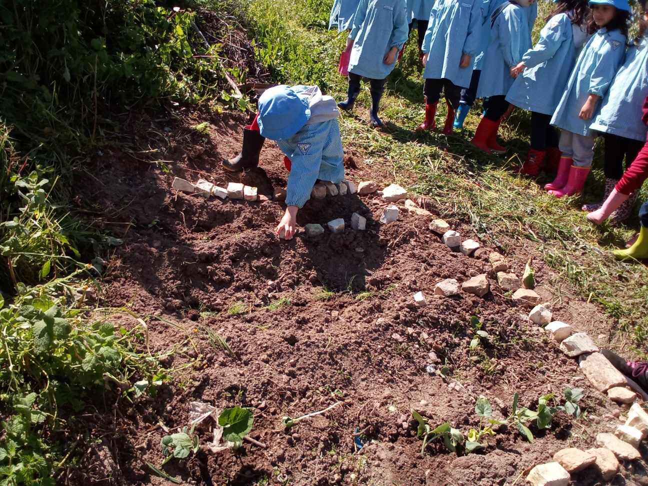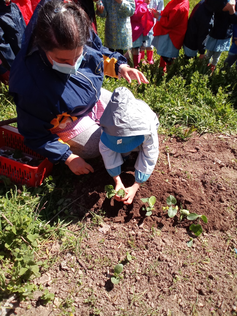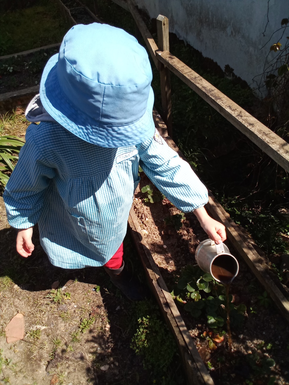 O grupo da sala verde do CPBES Almalaguês, gosta muito de sair “fora de portas” e da horta da Joaninha cuidar. As crianças trouxeram, de casa algumas sementes (abóbora, alho francês, feijão, melão e beringela) para plantarmos. Chegado o momento de as transplantarmos, fomos até à horta da joaninha onde fizemos a transplantação das nossas sementeiras. Algumas sementes não foram plantadas na horta da joaninha e assim fomos semear num espaço por de trás da nossa instituição junto ao nosso compostor. Para regar usamos a água da chuva, do recipiente que está na horta da joaninha.