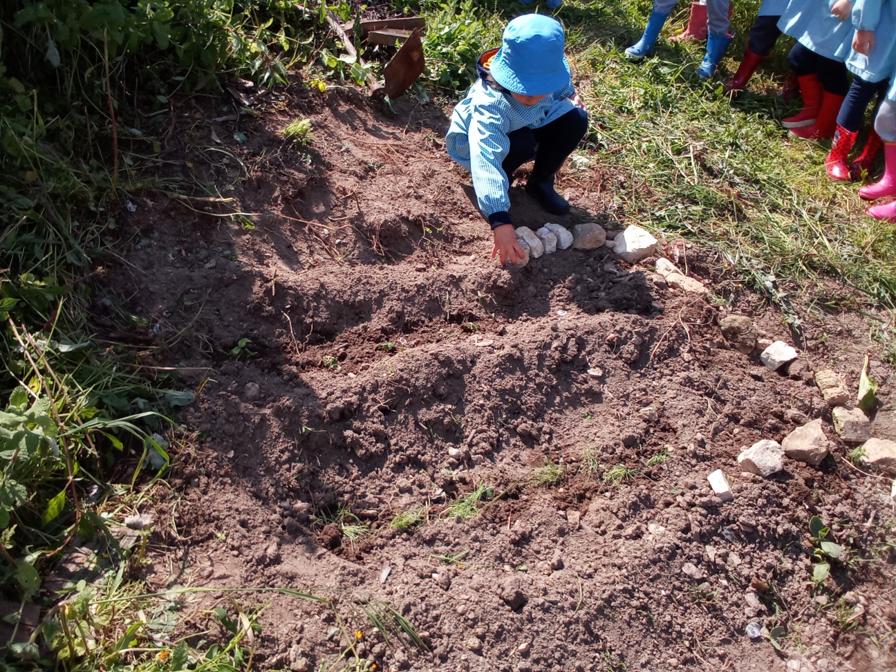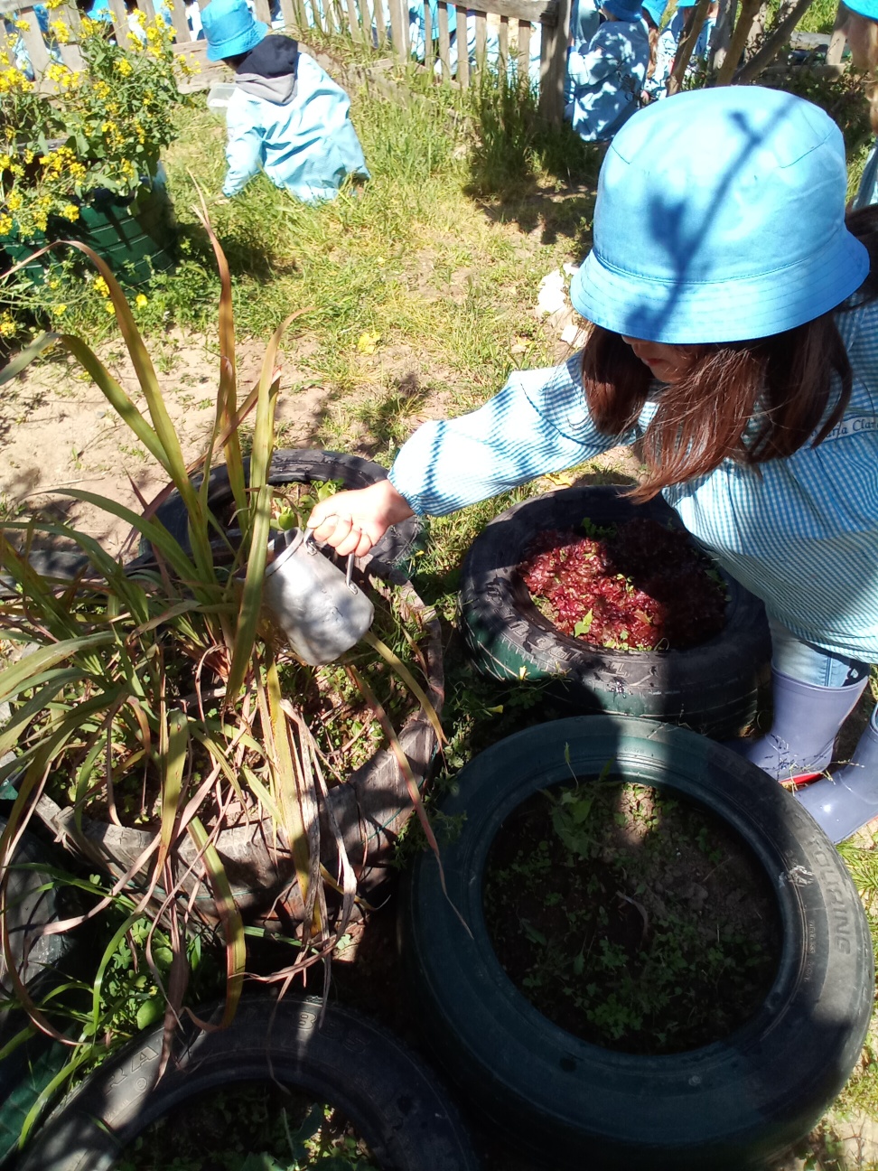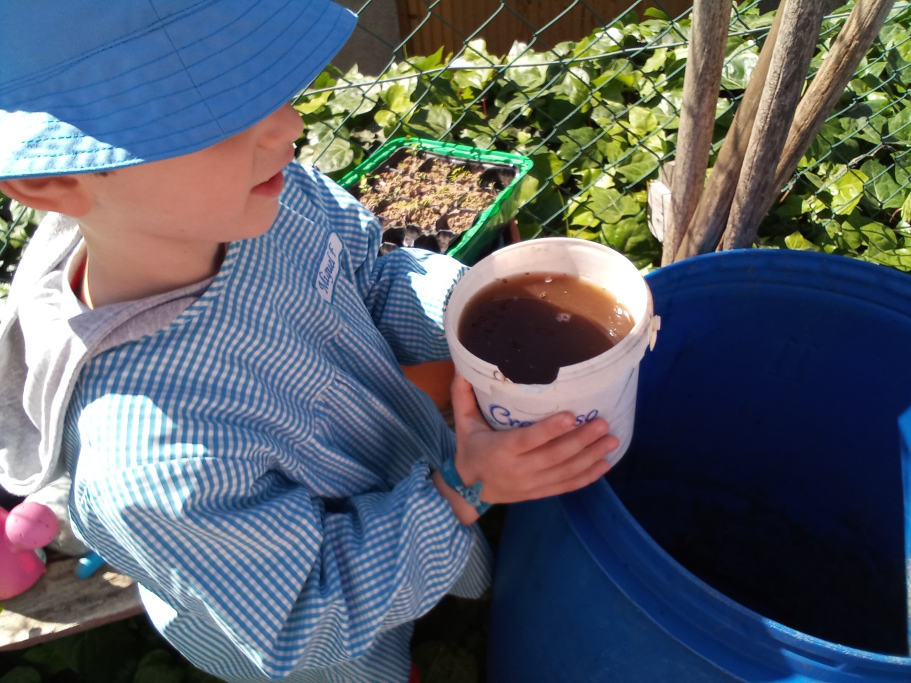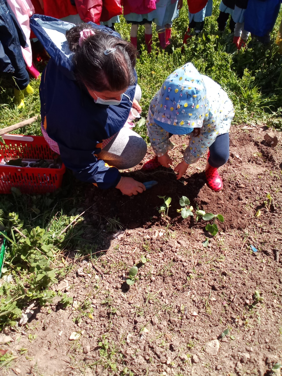 O grupo da sala verde do CPBES Almalaguês, gosta muito de sair “fora de portas” e da horta da Joaninha cuidar. As crianças trouxeram, de casa algumas sementes (abóbora, alho francês, feijão, melão e beringela) para plantarmos. Chegado o momento de as transplantarmos, fomos até à horta da joaninha onde fizemos a transplantação das nossas sementeiras. Algumas sementes não foram plantadas na horta da joaninha e assim fomos semear num espaço por de trás da nossa instituição junto ao nosso compostor. Para regar usamos a água da chuva, do recipiente que está na horta da joaninha.