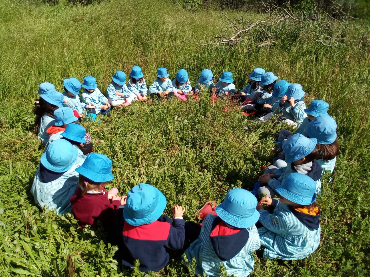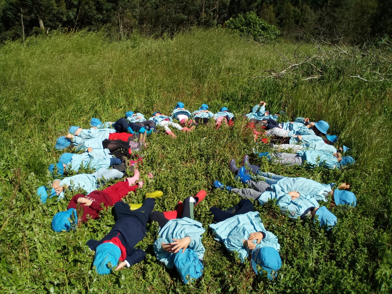 No fim aproveitamos para ouvir/sentir a natureza onde as crianças sentadas/deitadas no chão fizeram uma grande roda.
